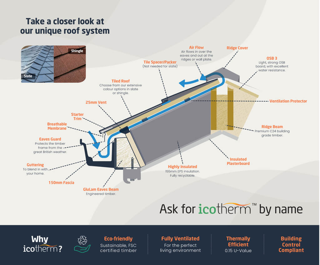 Icotherm roofs are fully compliant with building control regulations. It is recommended that you check with your local building office to determine whether or not consent is required. As a leading timber design system we are approved by building inspectors, thus simplifying the building certificate application process.